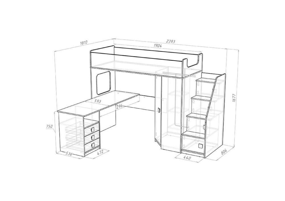 Высота кровати чердака всего 1677 мм.