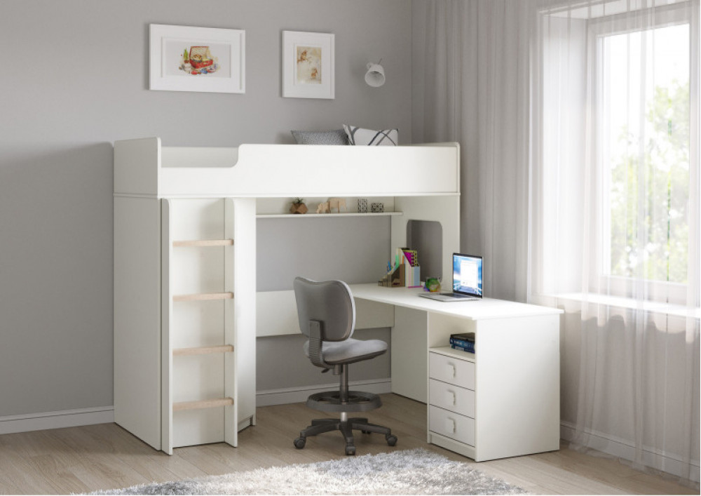 Учебная зона со столом под спальным местом открывает возможности для письменных работ,а также здесь удобно расположить ноутбук.