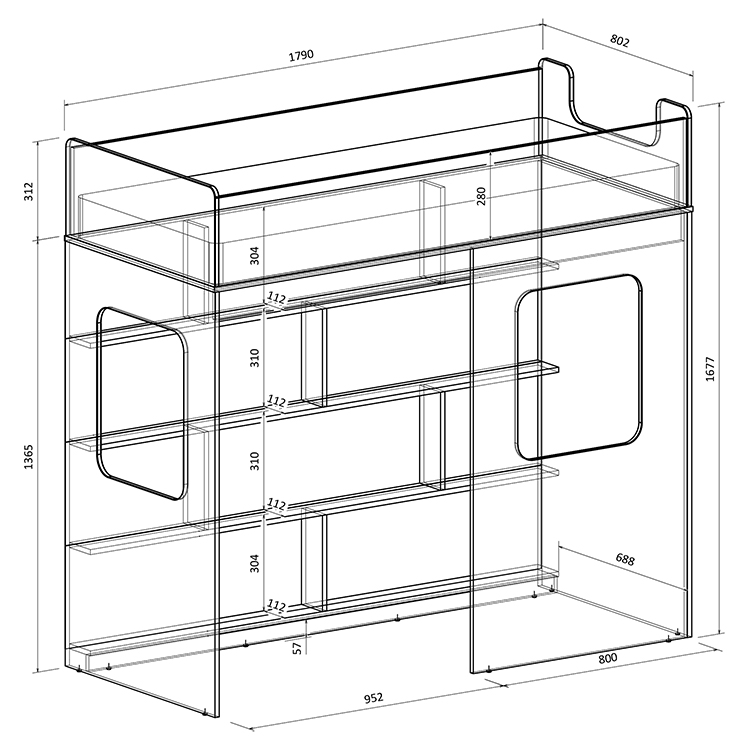 Высота кровати чердака всего 1677 мм.