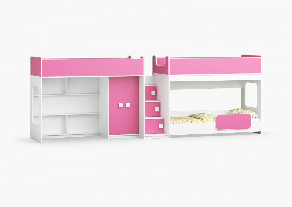 Две кровати, шкаф, игровая зона – одна лестница. Идеальный вариант для троих!