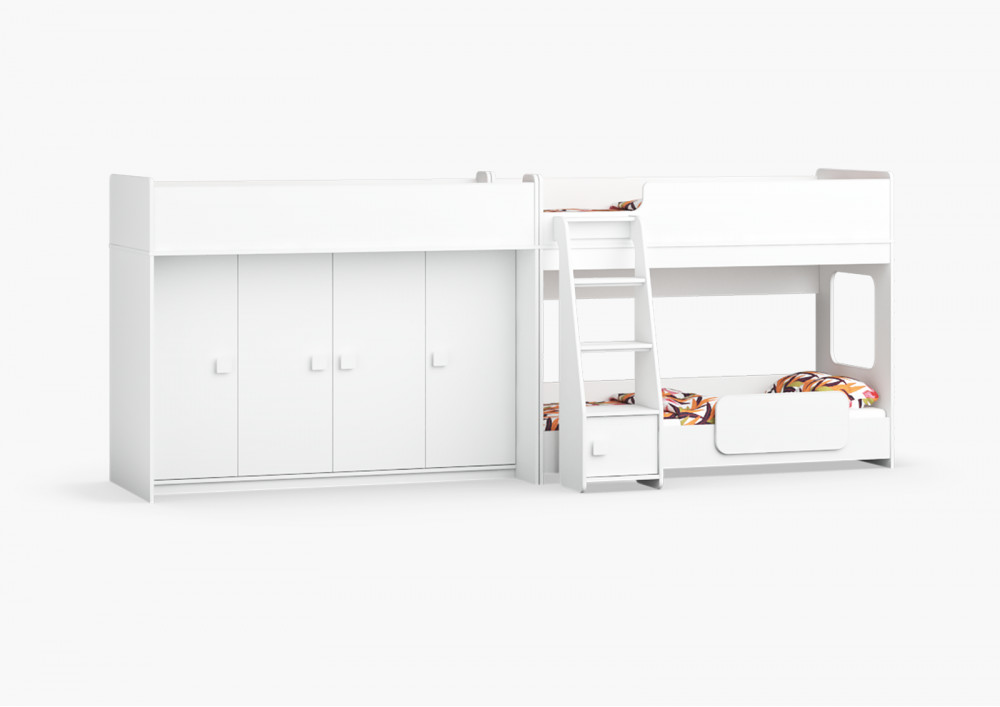 Две кровати, огромный шкаф для хранения вещей – одна лестница. Идеальный вариант для троих!